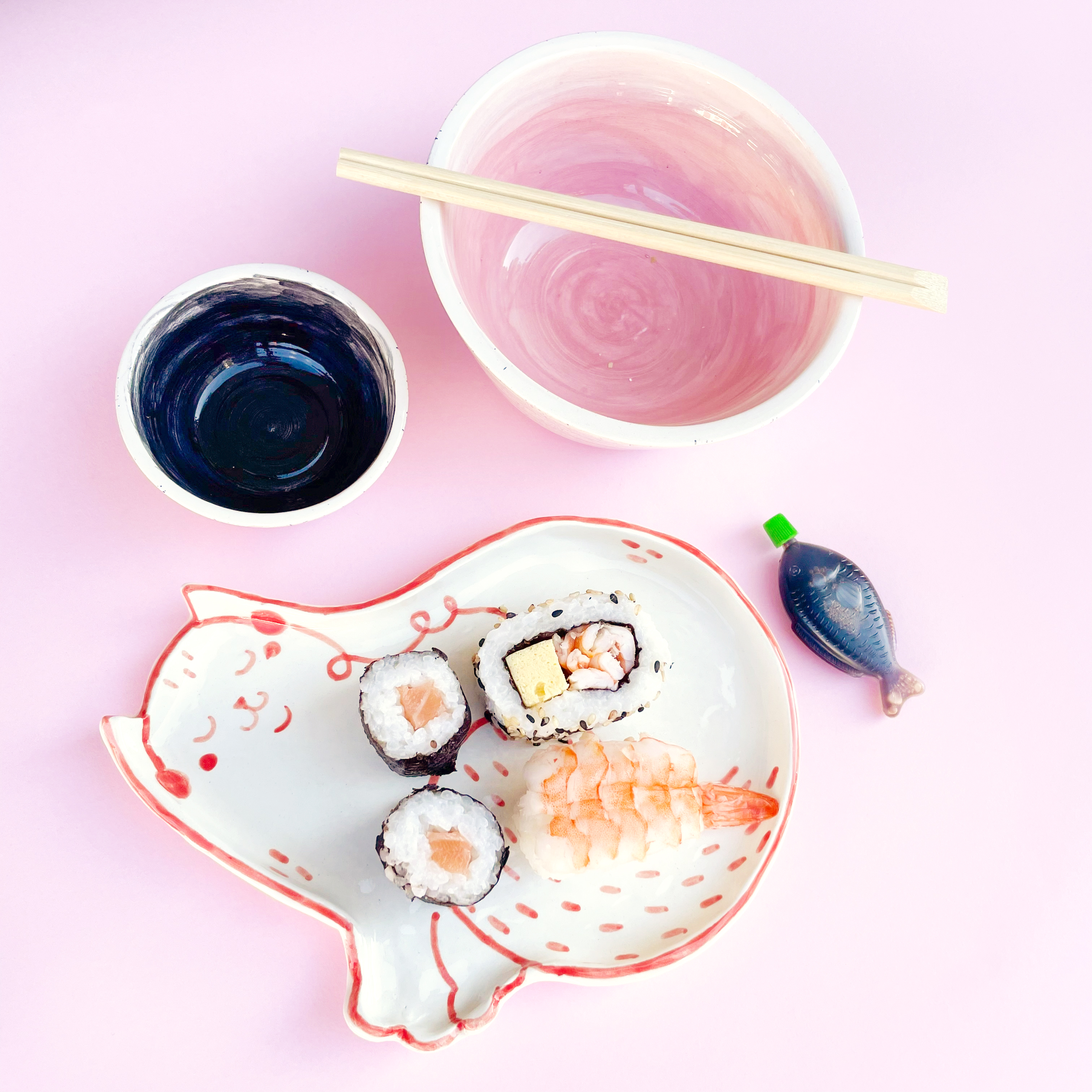 set da sushi/aperitivopiattino+2 ciotoline, rosso